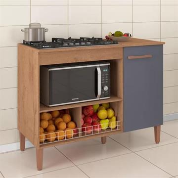 Fabricado em MDP 12mm e MDP 15mm, ele comporta cooktop de 5 bocas, e claro, além disso, possui espaço de armazenagem no compartimento com 1 Porta de Abrir e espaço disponível para 1 Forno ou 1 Micro-ondas!